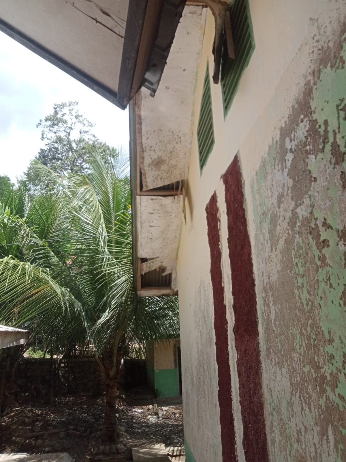 terlihat jelas pada kusen pintu yang mulai rapuh, serta plafon ruang kelas yang berlubang di beberapa titik.