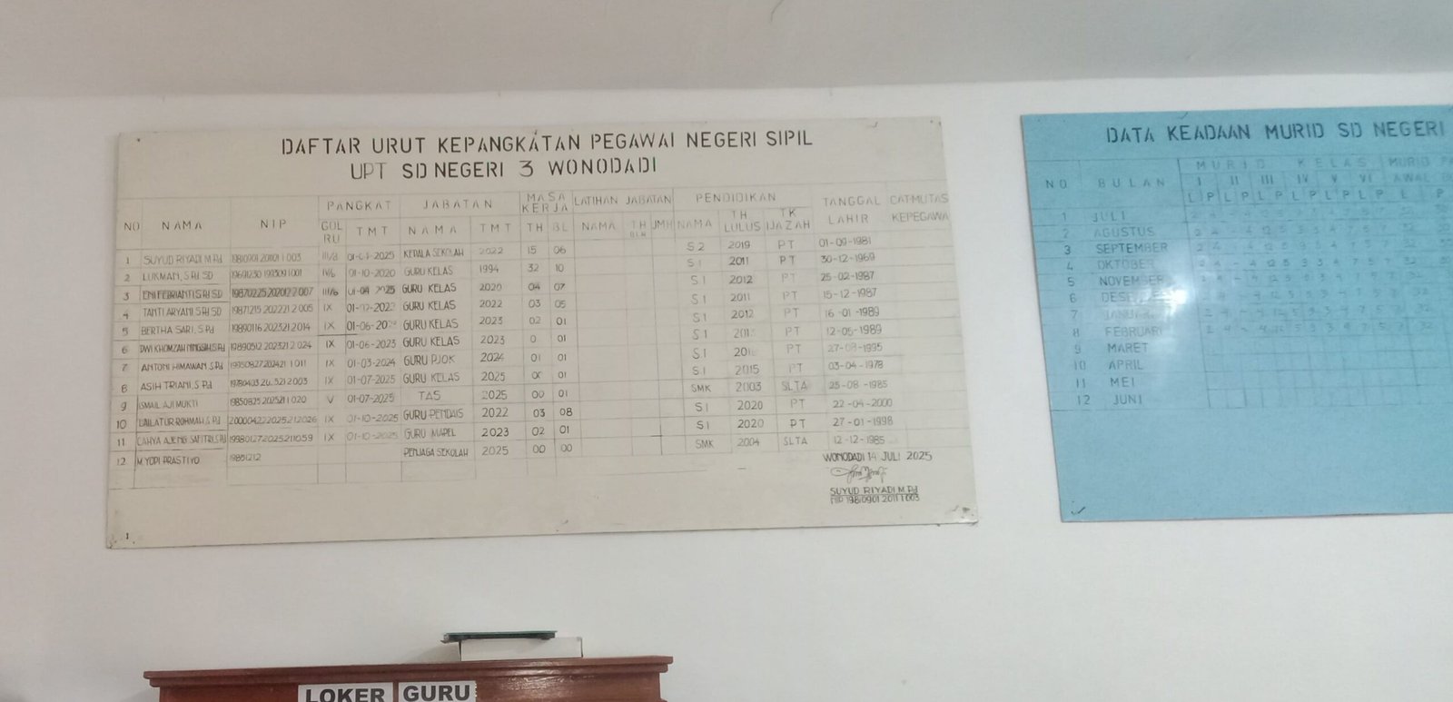 Ironisnya, kepala sekolah SD Negeri 3 Wonodadi, Suyut,Riyadi M,pd, yang selama ini dikenal agamis, lugu, dan sederhana, justru disebut-sebut berada di balik pengelolaan Dana BOS yang jauh dari prinsip transparansi dan akuntabilitas.