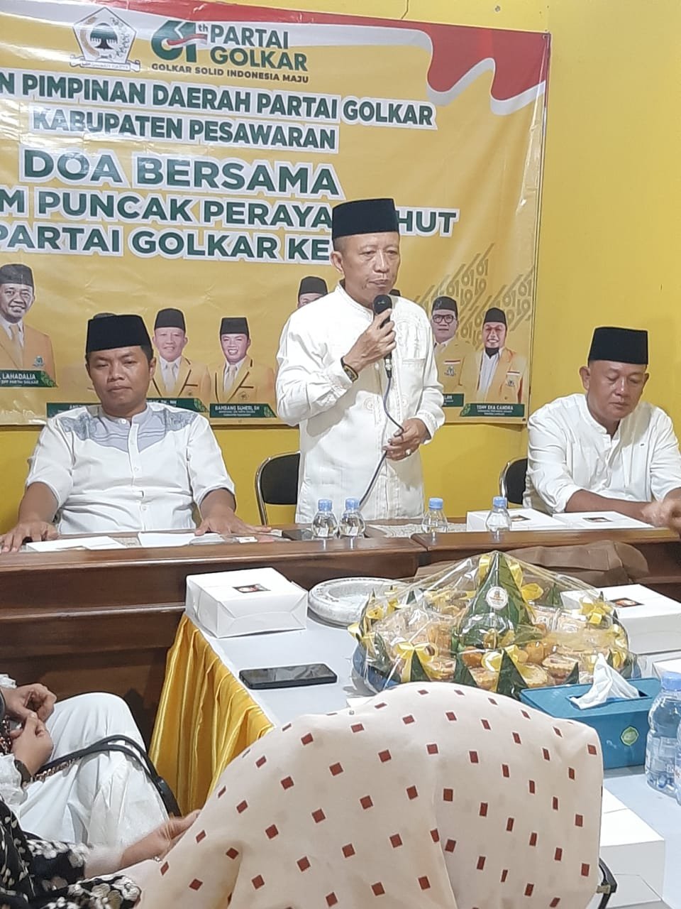 Ketua DPD Golkar Pesawaran, Yusak, menyampaikan bahwa acara ini merupakan instruksi dari Dewan Pimpinan Pusat (DPP) Partai Golkar sebagai rangkaian penutup seluruh kegiatan HUT Golkar Ke-61. “Kami melaksanakan doa bersama ini untuk dua tujuan utama,” ujar Yusak.