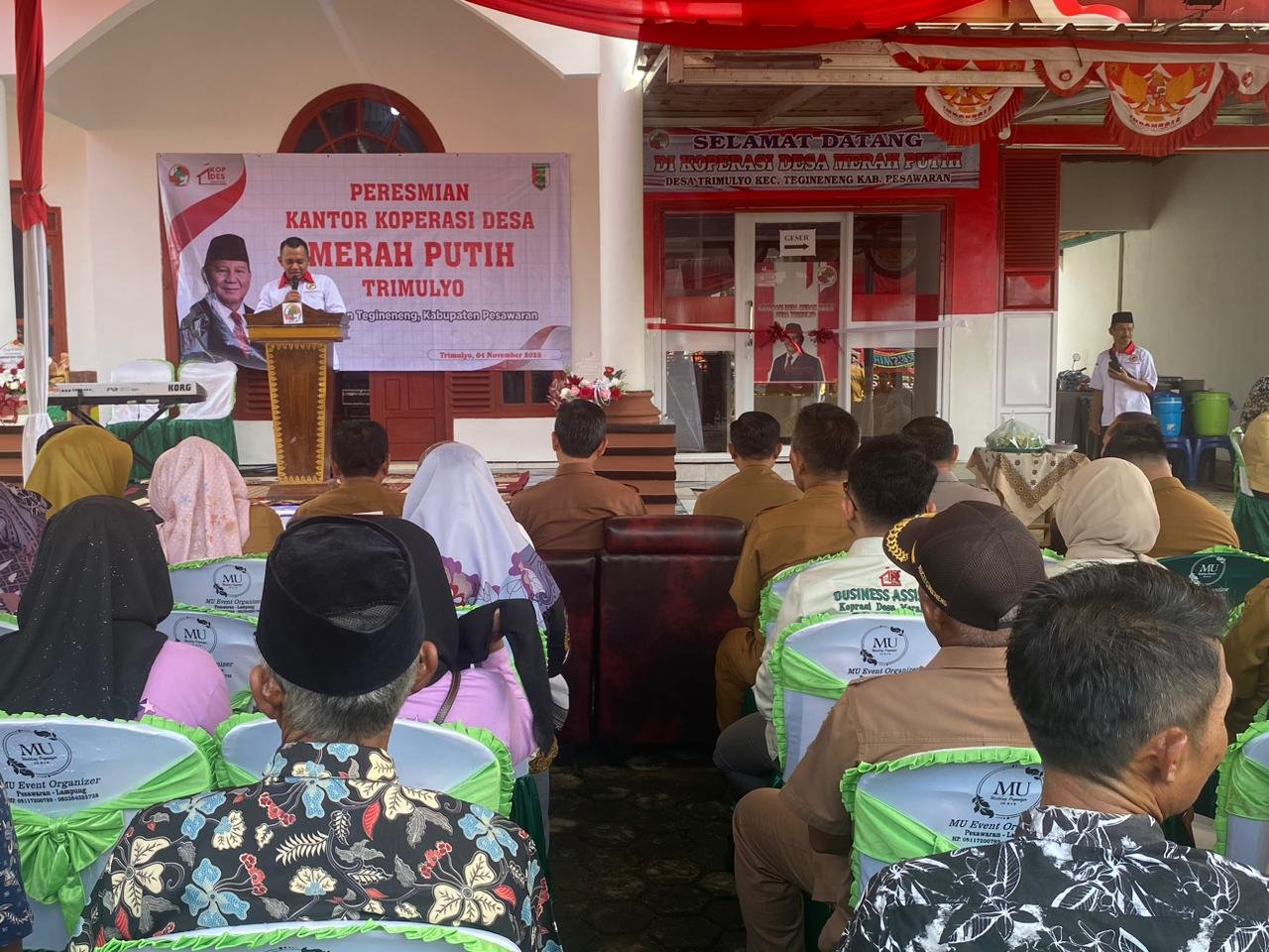 KILAS-INFONEWS.COM/Pesawaran, 4 November 2025 — Wakil Bupati Pesawaran Antonius Muhammad Ali meresmikan Kantor Koperasi Desa Merah Putih (KDMP) Trimulyo yang berlokasi di Jalan Sutan Sakti, Dusun Wonorejo, Desa Trimulyo, Kecamatan Tegineneng pada Selasa (4/11/2025). Koperasi ini sekaligus menjadi koperasi Merah Putih pertama yang berdiri di Kabupaten Pesawaran dan diharapkan mampu menjadi penggerak ekonomi masyarakat desa.