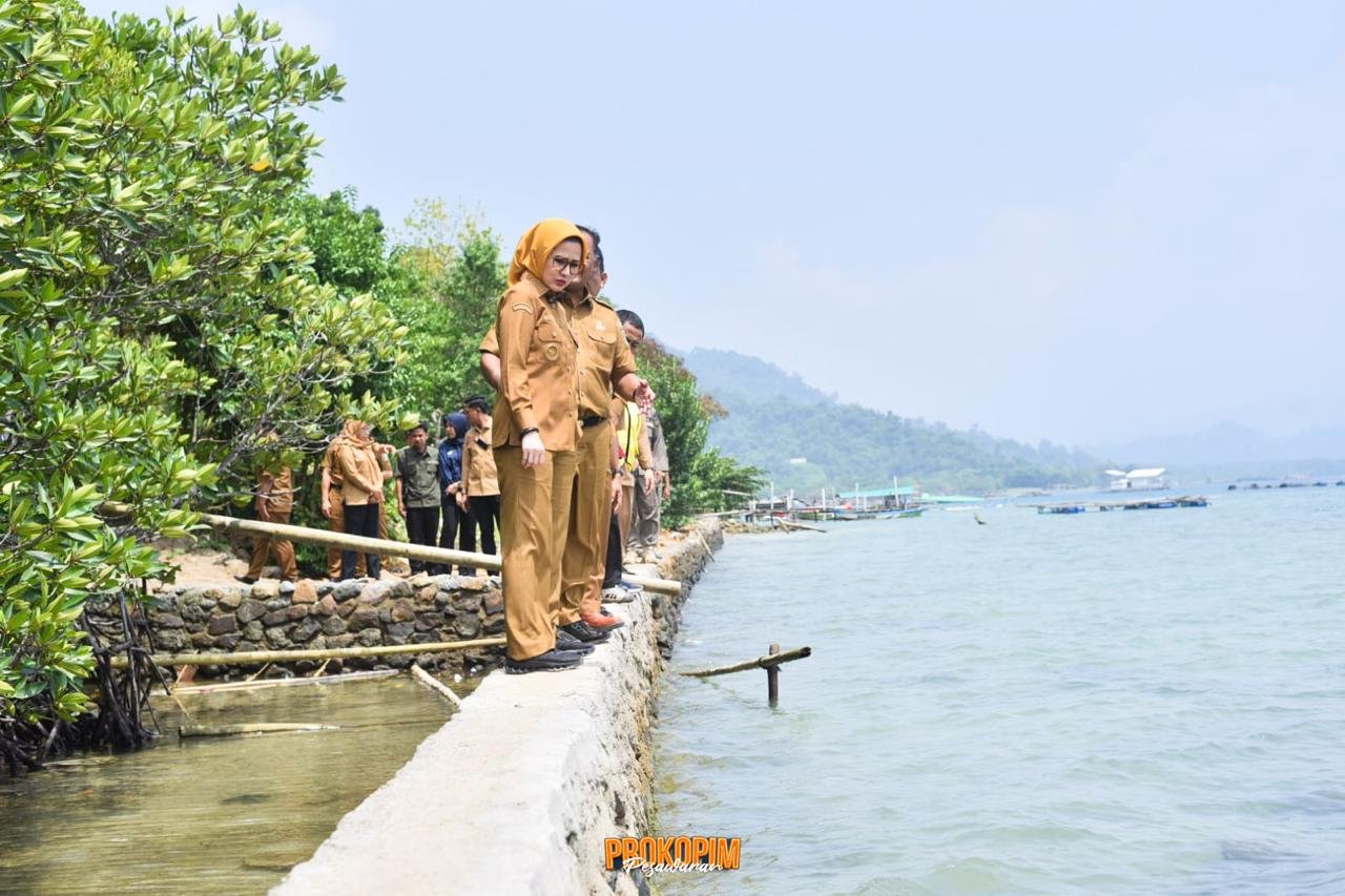 Pesawaran, 22 September 2025-Bupati Pesawaran Hj. Nanda Indira B., S.E., M.M., meninjau langsung hasil rehabilitasi tanggul pemecah ombak di Dusun Perantian, Desa Durian, Kecamatan Padang Cermin, Senin (22/9/2025). Proyek tersebut dibangun untuk menanggulangi abrasi pantai sekaligus mencegah hempasan air laut hingga ke badan jalan.