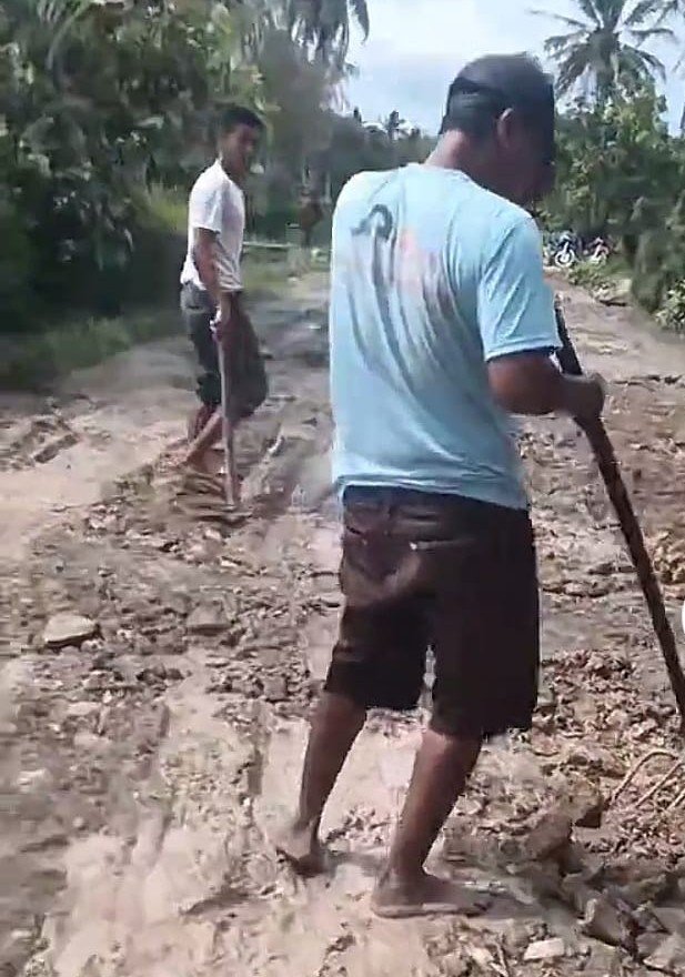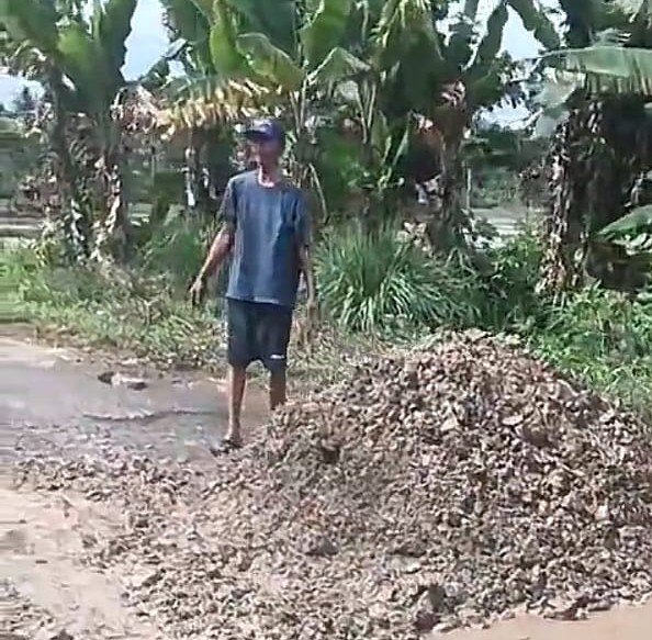Sindiran lainnya juga terdengar dari warga yang menyebut jalan rusak itu sudah seperti kolam lele. “Jalannya jelek, Buk, makanya ditimbun! Sudah becek semua, sudah bisa dipelihara ikan,” ujar seorang warga dengan nada geram.